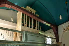 Fraaie ligging, preekstoel en doophek uit 1654, oude grafzerken, Engels orgel